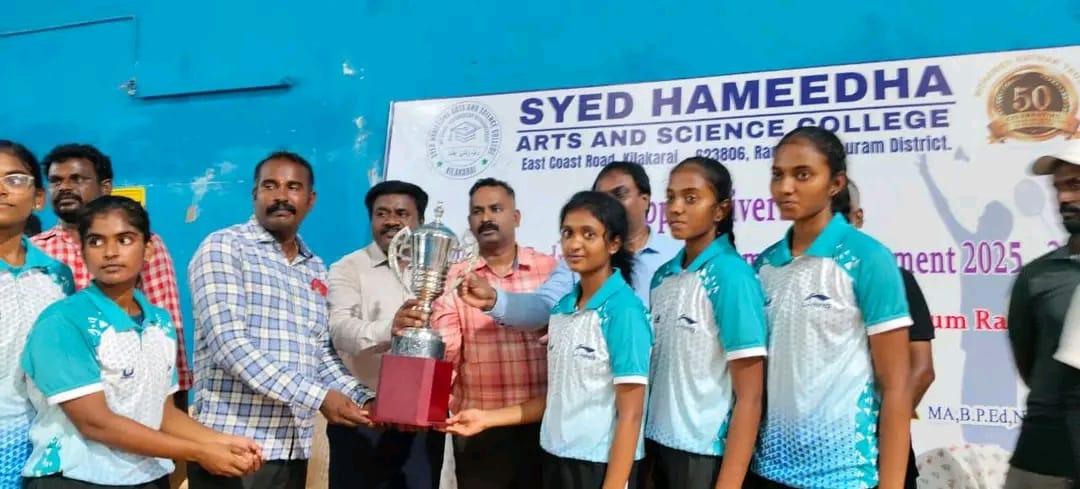 Our student from Alagappa University College of Physical Education contributed to the Women’s Badminton Team winning the Championship 2025. The tournament was held on 17th October 2025 at Syed Hameetha College, Ramanathapuram, Tamil Nadu.